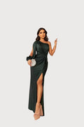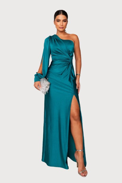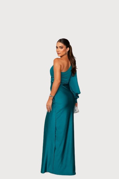 Introducing the Izabela Elegant Evening Dress—a graceful maxi that elevates your evening wardrobe with chic sophistication. Its striking one-shoulder neckline, dramatic open sleeves, and flowy relaxed silhouette create a silhouette that’s both memorable and graceful.
