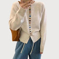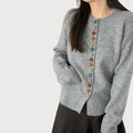 The Celestine Cardigan was created for women who love a balance of timeless style and cozy warmth. Crafted from a soft, heavy knit, its playful row of colorful buttons adds a touch of cheer while the classic silhouette makes it endlessly versatile. Whether you’re layering for a chilly autumn walk or enjoying a relaxed evening at home, this cardigan is a piece you’ll reach for again and again.