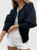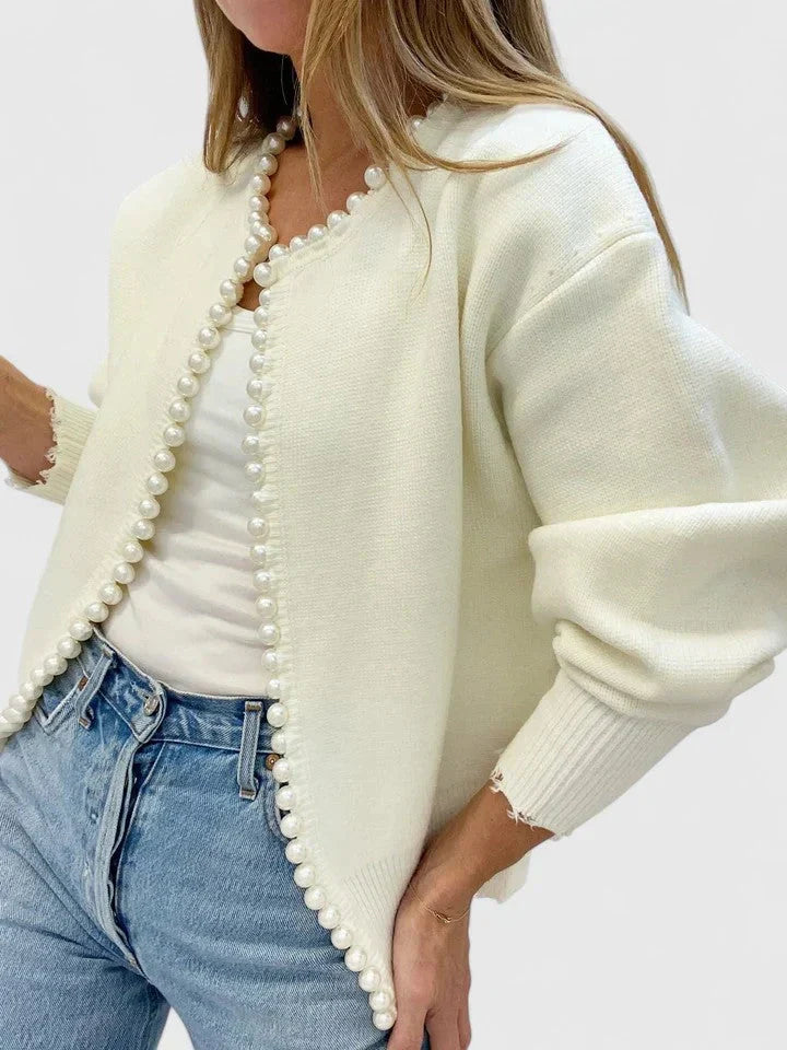 The Corvella Pearl Cardigan was created for women who cherish both comfort and sophistication. With its soft knit fabric and delicate pearl detailing along the neckline and front, it brings a touch of grace to everyday wear—perfect for dinners, casual outings, or simply feeling polished at home.